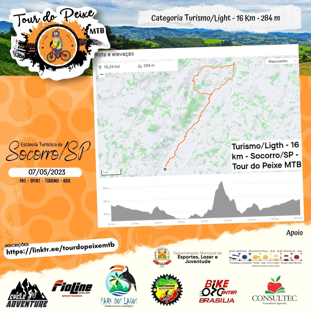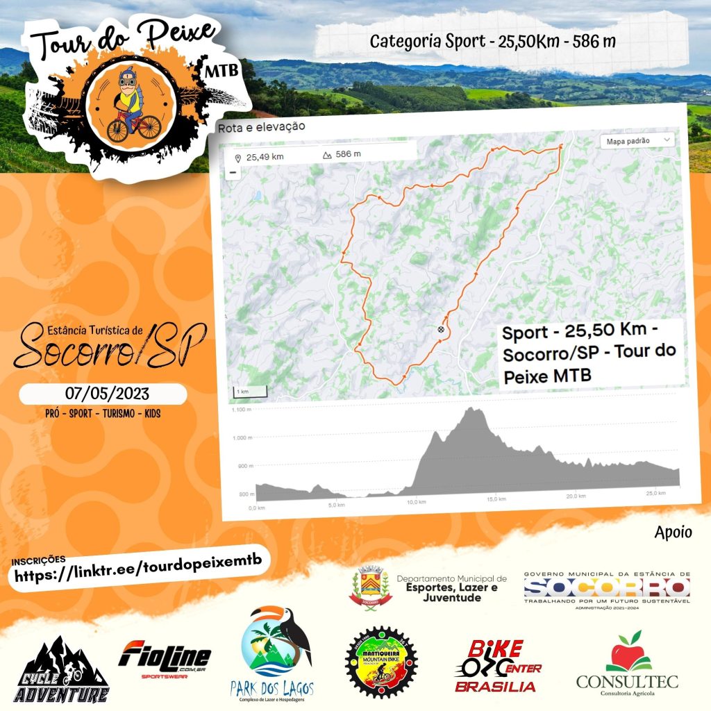 O Tour do Peixe MTB, é um evento de Cicloturismo não competitivo, e nessa edição número 10 será realizada na Estância Turística de SOCORRO/SP no Complexo de Lazer e Hospedagens “Park dos Lagos” no dia 07/05/2023 com largada prevista para 8:00am e concentração a partir das 06:00am.